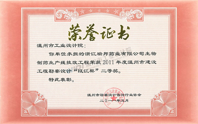 浙江瑞邦藥業(yè)有限公司生物制藥生產(chǎn)線技改工程設(shè)計(jì) 甌江杯二等獎(jiǎng)