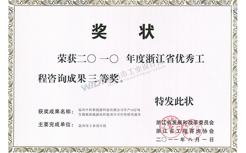 溫州中科新能源科技有限公司年產(chǎn)10萬噸生物柴油能源高科技項(xiàng)目可行性研究報(bào)告 省優(yōu)秀咨詢成果三等獎(jiǎng)