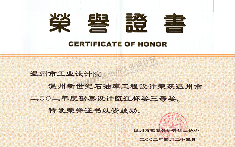 溫州新世紀(jì)石油庫工程設(shè)計 甌江杯三等獎